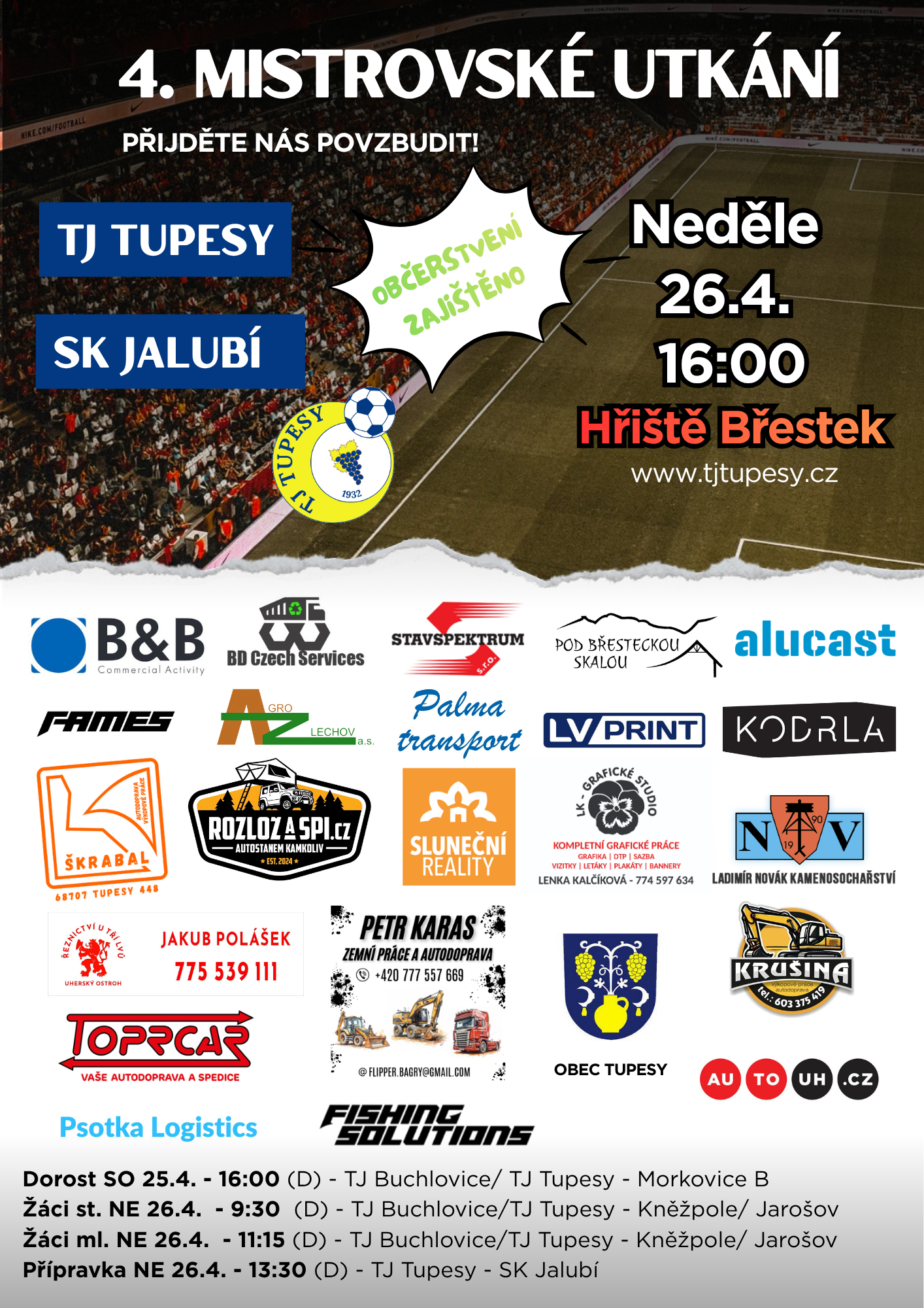TJ Tupesy Vás zve na 1. mistrovské utkání 9.ligy!
