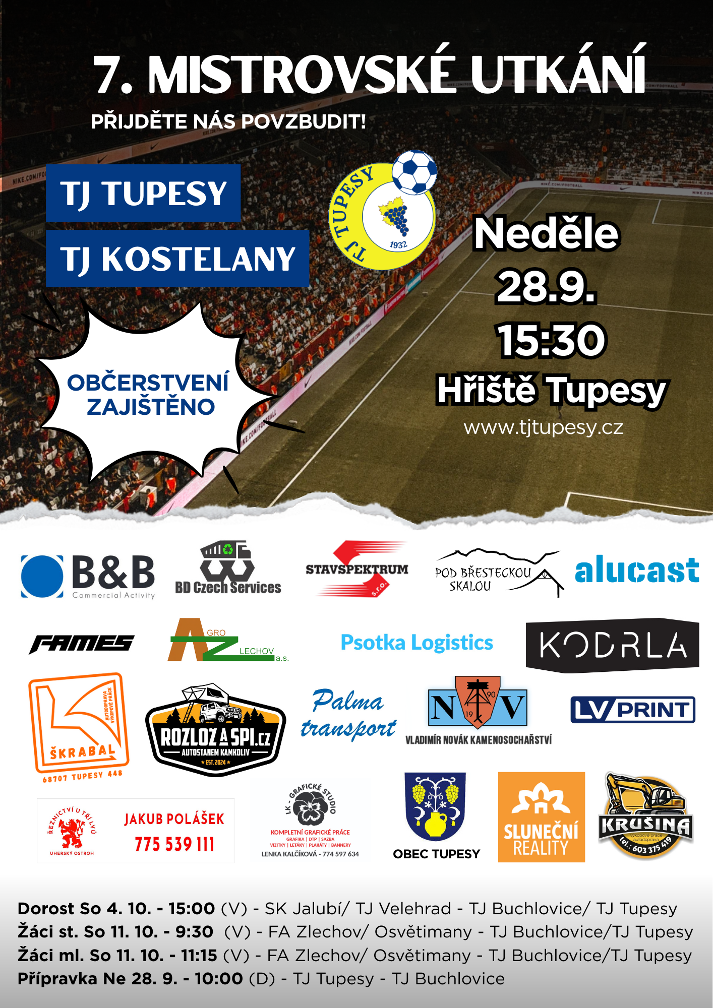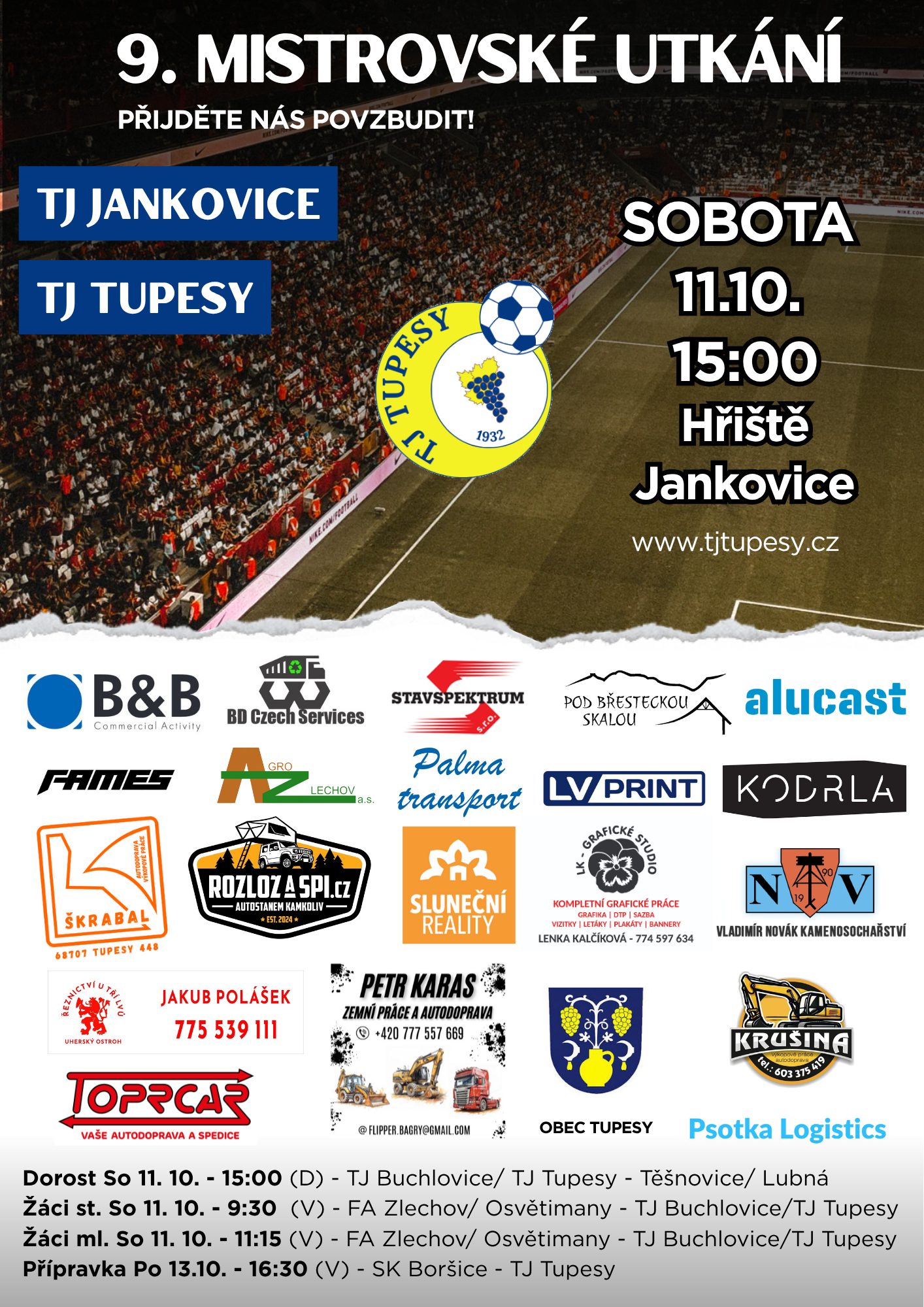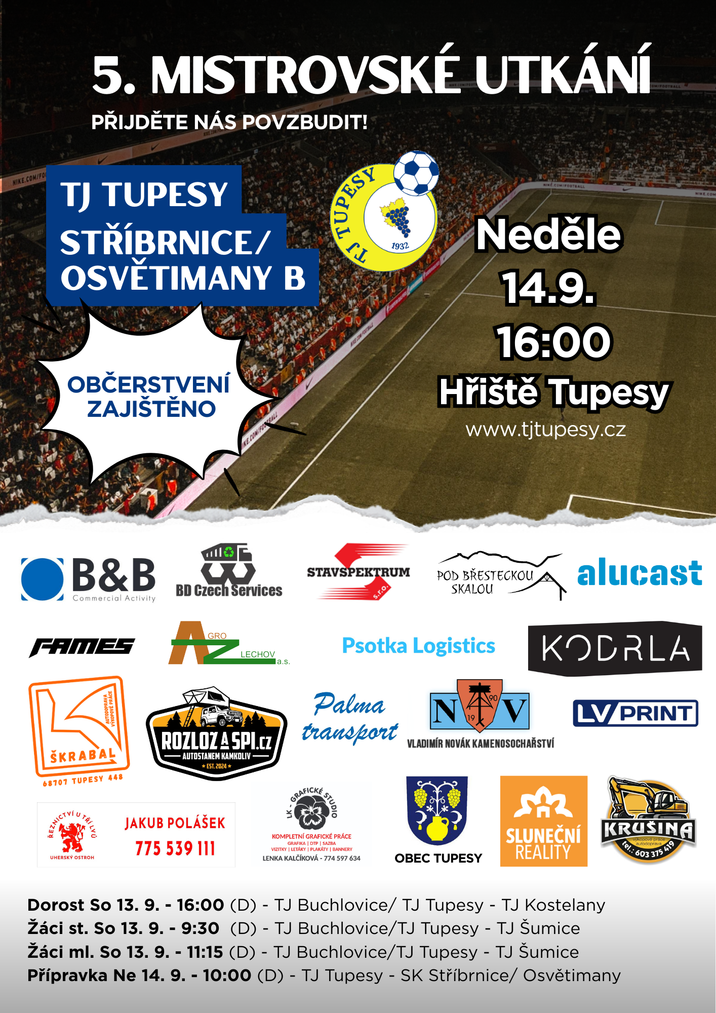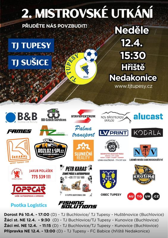 TJ Tupesy Vás zve na 1. mistrovské utkání 9.ligy!